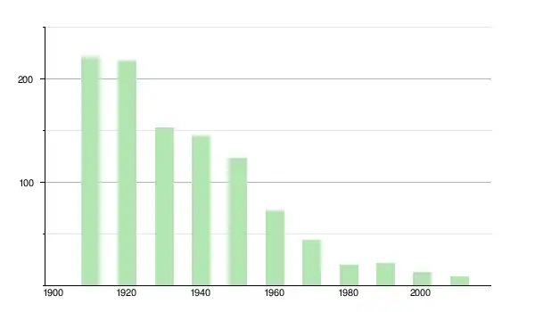 | 1930 | 153 | ▼ −29,82 % | |