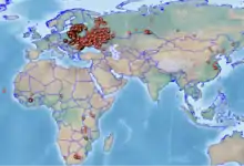 En Russie, la maladie est détectée dans l'Oblast autonome juif le [59], et le un nouveau foyer est détecté dans le Kraï du Primorié, probablement en provenance de Chine[60].