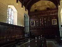 La vieille cour s'étend au-delà du cloître de la chapelle. Au sud de la cour se trouve la Grande Salle qui sert de réfectoire (Dining Hall), le seul bâtiment du collège qui a survécu du XIIIe siècle et qui est le plus vieux de tous les collèges. Une légende veut que ce Hall soit un des plus vieux bâtiment d'Angleterre qui sert toujours à l'activité pour laquelle il a été conçu. En effet, chaque soir, les élèves peuvent diner dans le Hall sur les traditionnelles tables en bois (celle des professeurs étant perpendiculaire aux autres) à la lumière des chandelles et après avoir écouté les grâces en latin. Entre 1866 et 1870, le Hall a été restauré par l'architecte George Gilbert Scott Jr. Sous la direction de Scott, le plafond en charpente de bois apparent fut réparé et deux anciens parloirs fusionnés pour créer la nouvelle salle commune (Combination Room). Les vitraux ont aussi été remplacés par des pièces préraphaélites de William Morris; Ford Madox Brown et Edward Burne-Jones. La cheminée (originellement construite en 1618) fut restaurée par Morris, en incluant des représentations de St Pierre et Balsham. Le Hall a été considérablement rénové en 2006-7.