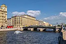 La longueur totale de tous les cours d'eau sur le territoire de Saint-Pétersbourg atteint 282 km et leur surface d'eau représente environ 10 % de la superficie totale de la ville[10]. Au cours de l'existence de la ville, le réseau hydrologique a subi des changements importants. Sa construction dans un endroit bas marécageux a nécessité la construction de canaux et d'étangs de drainage. La terre draguée a été utilisée pour élever la surface. À la fin du XIXe siècle, le delta de la Neva se composait de 48 rivières et canaux, formant 101 îles. Au fil du temps (au fur et à mesure de la construction de la ville), de nombreux réservoirs ont perdu leur valeur d'origine, se sont pollués et se sont remplis. Au XXe siècle, à la suite du remblayage des canaux, canaux et embranchements, le nombre d'îles a été réduit à 42.