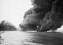 Les forces armées allemandes commencèrent à faire des essais de combustion de pétrole flottant. Le , ils enflammèrent 100 tonnes de pétrole flottant, il brûla pendant 20 minutes produisant de la chaleur et la fumée en abondance. Ceci presque une semaine avant la première mise à feu réussie britannique[51].