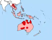 L'Océanie est un ensemble géographique dont les frontières sont discutées, mais qui regroupe généralement l'Australie, la Nouvelle-Guinée, la Mélanésie, la Micronésie et la Polynésie[Note 1].