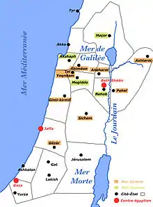 74. (en) S.Y. Ahituv, Canaanite Toponyms in Ancient Egyptian Documents, Jerusalem/Leiden, Magnes Press, , 214 p. (ISBN 965-223-564-4)