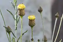 Les inflorescences sont en capitules solitaires ou peu nombreux, hétérogames, disciformes. Les phyllaires sont généralement cartilagineux mais souvent dotés d'une partie apicale papuleuse, en plusieurs rangs, plus nombreux que les fleurs du disque. Les fleurons sont discoïdes bisexués ; la corolle est jaune ; les lobes de la corolle sont dressés, les nervures atteignant l'apex des lobes. Les anthères sont écalcaires, sans queue ; le tissu endothélial est polarisé ; les appendices apicaux sont plats, aussi larges que les thèques. Les branches du style sont obtuses, dorsalement avec des poils de balayage obtus n'atteignant pas la furcation. La surface stigmatique est séparée à la base mais apicalement confluente[2].