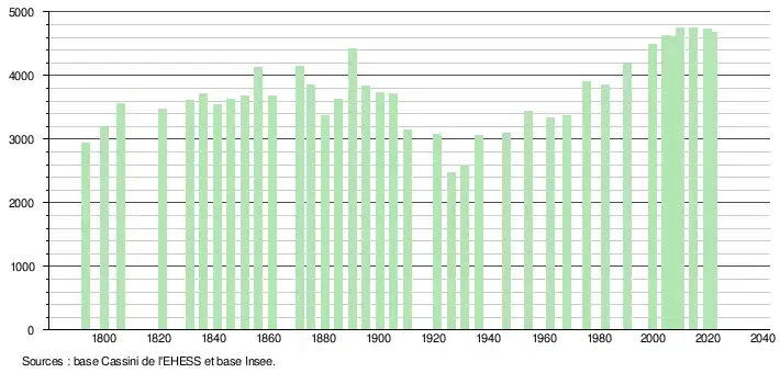 4 683 hab. (2021 en diminution de 0,97 % par rapport à 2015)