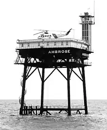 Le phare d'Ambrose, ou tour d'Ambrose, marque le point de convergence de plusieurs routes maritimes à la sortie de la baie de New York :