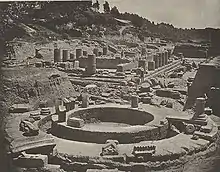 En 1877, au cours de la troisième année de fouilles menées par l'Empire allemand, furent découverts les premiers blocs de fondation d'un bâtiment circulaire, immédiatement reconnu comme le Philippéion. Le contrat de fouilles avec le gouvernement grec stipulait que les découvertes en double pouvaient être cédées à l'Empire allemand après que la Grèce eut donné son consentement, ce qui fut fait dans ce cas : des marches de la krépis, des fragments de colonnes et de sima, ainsi qu'une base de colonne sont arrivés aux musées de Berlin en 1889[5]. Ces pièces ont été rendues à Olympie en 2002 pour un prêt permanent, à l'occasion de la reconstruction partielle du monument. Les résultats des fouilles de 1877-1878 ont été publiés en 1892 par Friedrich Adler [6]. Un nouvel examen des éléments structurels par Hans Schleif et Willy Zschietzschmann a conduit à une reconstitution de la couverture qui s'écartait notablement des hypothèses d'Adler[7].