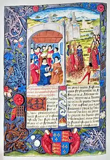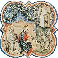 Philippe II dit « Auguste »[2], né le à Paris et mort à Mantes le , est le septième roi (1180-1223) de la dynastie des Capétiens et le premier monarque auquel est attribué le titre de roi de France. Il est le fils héritier de Louis VII et d'Adèle de Champagne.