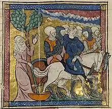 La croisade ne fait que commencer, pourtant Philippe décide de prendre le chemin du retour. La mort du comte de Flandre survenue le 1er juin lors du siège de Saint-Jean-d'Acre rouvre le dossier sensible de la succession flamande[46]. Le fait qu'il n'ait qu'un seul héritier l'invite par ailleurs à la prudence. C'est dans un état de santé délabré et très atteint physiquement que Philippe passe par Rome pour obtenir du pape l'autorisation de quitter la croisade. Le roi rentre à Paris le .