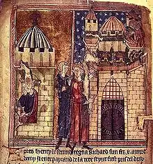 Les deux rois cherchent des soutiens, tandis que le nouveau pape Innocent III[60], qui souhaite mettre sur pied une nouvelle croisade, les pousse à négocier. Le , entre Les Andelys et Vernon, ils conviennent en présence du légat d'une trêve de cinq ans, d'ailleurs mal respectée[61]. La situation se règle brusquement : lors du siège du donjon du château de Châlus-Chabrol (Limousin) le , Richard est frappé par un carreau d'arbalète. Il succombe à sa blessure quelques jours plus tard, le 6 avril, à quarante-et-un ans et au faîte de sa gloire.