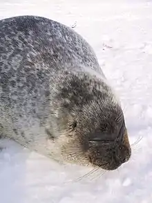 Le phoque annelé ou phoque marbré (Pusa hispida) est une espèce de phoque qui tire son nom des taches plus claires en forme d'anneaux parsemées sur son corps.