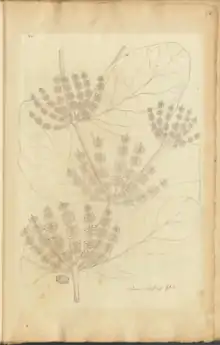 Charles Plumier a collecté cette espèce à Saint-Domingue, dans la région centrale entre Léogâne et Petit-Goâve[4] et l'a décrite à titre posthume en 1757 de façon non valide (nomenclature pré-linnéenne) :
