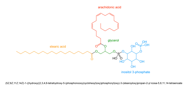 ![]() Structure du sn-1-stéaryl-2-arachidonyl-phosphatidylinositol-3-phosphate |