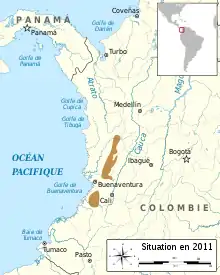 Distribution géographique de Phyllobates bicolor en Colombie.