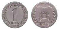 La pièce a été lancée le 7 juin 1972, en 1974 on a émis vingt-cinq millions de dinars, et en 1976 on a augmenté l'émission à soixante-quinze millions de dinars[4]. L'avers de la pièce comporte au centre un tracteur agricole avec sur son bord un paysan sur la partie inférieure de la pièce un millésime grégorien de l’année de frappe est inscrit, et des deux côtés du millésime, un épi de blé sort et est orienté vers le haut. Sur la partie supérieure une poignée de main.