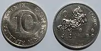10 tolars | 24,0 mm | 5,75 g | 75 % Cu 25 % Ni | un cheval avec la mention EQUUS et la valeur faciale 10 | La valeur faciale 10 dans un cercle avec les mentions REPUBLIKA SLOVENIJA et DESET TOLARJEV et le millésime | 2000-2006 | |