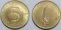 Lors de la mise en place de l'État slovène, la Banque de Slovénie a frappé une série de pièces avec pour motif des animaux