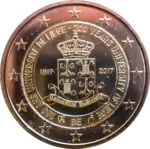 - le déplacement du monogramme royal et de l'année dans la partie intérieure de la pièce, afin de ne laisser dans la couronne que les 12 étoiles européennes ;