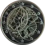 Originellement, une pièce de 2 € devait commémorer les Jeux olympiques de Paris de 2024. En raison de la crise sanitaire liée à la pandémie de Covid-19, la Monnaie de Paris a décidé de la remplacer par une pièce célébrant les chercheurs[52]. | ||||||