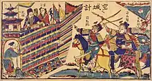 Dans le roman des Trois royaumes, Zhuge Liang a mené six expéditions vers le nord à partir de Hanzhong par Qishan dans l'espoir de capturer Chang'an. Dans la 1re expédition, ses efforts ont été minés par la perte de Jieting, une passe près de Hanzhong, due à l'imprévoyance de Ma Su, qui refusa d'écouter les ordres du premier ministre. Avec la perte de la bataille de Jieting, Zhuge Liang doit battre en retraite. Le lieu où Xicheng (西城) est stationné le met en grand danger. Après avoir renvoyé toutes les troupes et lui-même restant sur place avec une poignée de fonctionnaires civils, Zhuge Liang décide d'employer un stratagème pour tromper l'armée de Wei. Il n'a alors à sa disposition que quelques centaines de soldats.