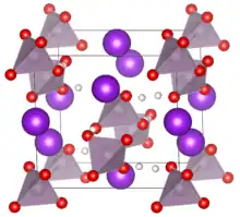 La structure tungstène-bronze tire son nom du composé modèle KxWO3, et se retrouve dans différents composés de formule générale AxB2O6. Comme la pérovskite, on peut la décrire comme un réseau d'octaèdres d'oxygènes liés par leurs sommets, mais de manière plus complexe, de sorte que ce réseau définit entre les octaèdres trois types de sites cristallographiques différents[17].