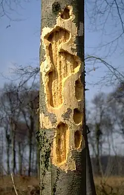 Ses loges sont réutilisées comme nichoir par de nombreuses autres espèces comme la Chouette de Tengmalm, la Martre des pins, le Choucas des tours par exemple ou, plus étonnant, par le Garrot à œil d'or, un canard du nord de l'Europe.