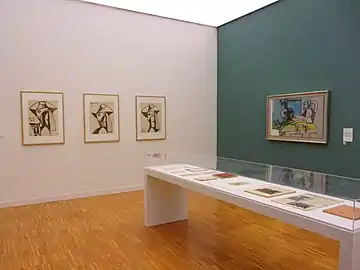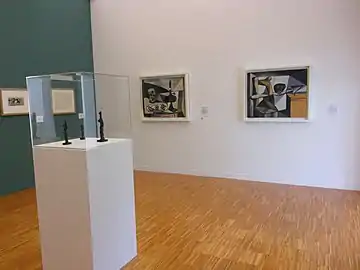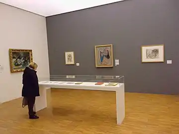 Par la suite, quelques œuvres du grand maitre de l'art moderne ont cependant été accueillies lors d'expositions temporaires du musée ou acquises par ce dernier. C'est le cas pour la conservatrice Gabrielle Kueny qui organise du 1er juillet au une exposition sur les affiches de Pablo Picasso[6]. C'est également le cas pour sa successeure, Hélène Lasalle, lors d'une exposition sur les céramiques de peintres célèbres du au dans laquelle certaines l'ont été par la main de Picasso[7]. En 2012, le musée de Grenoble acquiert l'un des treize collages cubistes épinglés de Pablo Picasso daté du printemps 1914 pour un montant de 750 000 euros[8]. Ce tableau intitulé Le verre est exposé tous les trois ans.