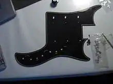 Le pickguard est une plaque, généralement en plastique, utilisée pour protéger la caisse des guitares des diverses rayures dues au plectre (aussi appelé médiator) et également des rayures d'ongles pour les guitaristes rythmiques.