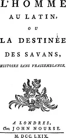 - L’Homme au latin, ou La destinée des savans ; histoire sans vraisemblance, Genève, 1769