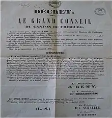 Dans ce cadre, il exprime le mécontentement populaire face aux interventions intempestives du gouvernement fribourgeois dans les affaires des communes et des paroisses[1].
