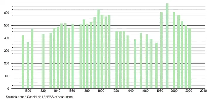 475 hab. (2021 en diminution de 5,75 % par rapport à 2015)