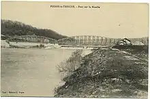 Le pont sur la Moselle et le barrage avant sa destruction et la canalisation de la Moselle (Carte postale, édition Pique, Toul).