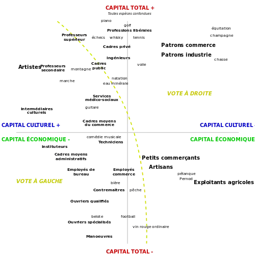 « La science sociale doit construire non des classes mais des espaces sociaux à l'intérieur desquels peuvent être découpées des classes mais qui n'existent que sur le papier. […] Mais faut-il pour autant accepter ou affirmer l'existence de classes? Non. Les classes sociales n'existent pas (même si le travail politique orienté par la théorie de Marx a pu contribuer, en certains cas, à les faire exister au moins à travers des instances de mobilisation et des mandataires). Ce qui existe, c'est un espace social, un espace de différences, dans lequel les classes existent en quelque sorte à l'état virtuel, en pointillé, non comme un donné, mais comme quelque chose qu'il s'agit de faire[85]. »