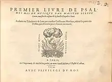 - Premier livre de psalmes … reduitz en tabulature de leut par Maistre G. Morlaye (Paris : Michel Fezandat, 1554). Boucaut 2007 n° 11, Brown 1965 n° 15545, Pidoux 1962 54/III.