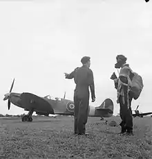 En , il achève sa formation à l'Operational Training Unit no 61 (no 61 OTU)[note 1] basée à Rednal (Pays de Galles). Il y effectue son premier vol sur le Supermarine Spitfire (matricule TO-S)[8]. Deux mois durant, il s'entraîne au pilotage du Spitfire et aux techniques du combat aérien. Il sort d'OTU à nouveau noté average[9].