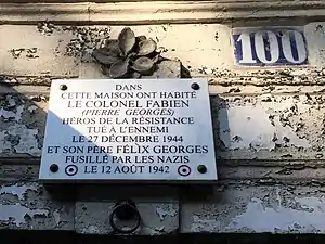 Pierre Georges, dit Colonel Fabien ou « Frédo », est un militant communiste et résistant français, né le à Paris et mort en opération militaire le à Habsheim (Alsace). Il est déclaré mort pour la France[2].