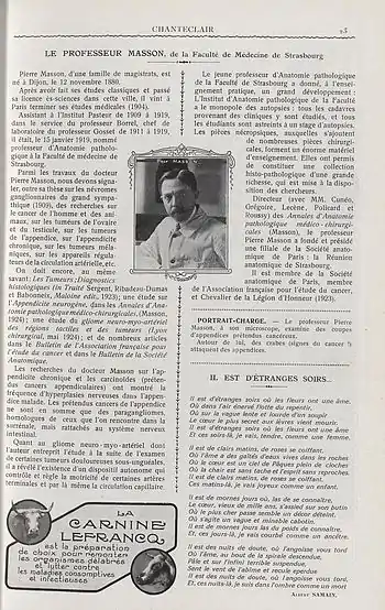 - « Le professeur Masson de la Faculté de médecine de Strasbourg, Chanteclair, 1925, p. 23, Texte intégral.