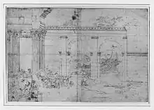 - Boston, musée des beaux-arts de Boston : Chantier naval près de ruines antiques, plume[31]