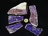 | Charoïte | 5-6 | Translucide | Violet, Lilas, Brun | Groupe des inosilicates | ![]() | |