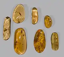 | Ambre | 2,5-3 | Transparent | Jaune pâle à Jaune Foncé, Gris, Vert, Bleu | Oléorésine fossile sécrétée par des conifères | |