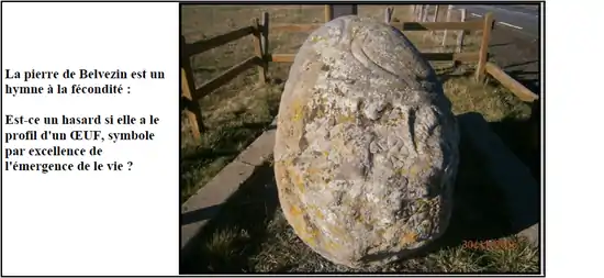 La pierre gravée de Belvezin a été déplacée en 2006 par rapport à son emplacement d'origine[2].