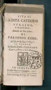 Page de titre du Vita di santa Caterina vergine e martire, 1636.