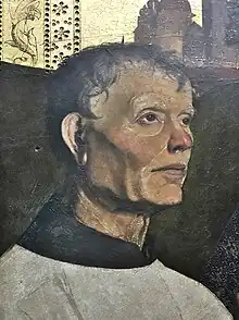 A gauche du tableau figure le donateur, c'est-à-dire celui qui a commandé l’œuvre et qui l’a payée afin de la donner à un établissement religieux.
