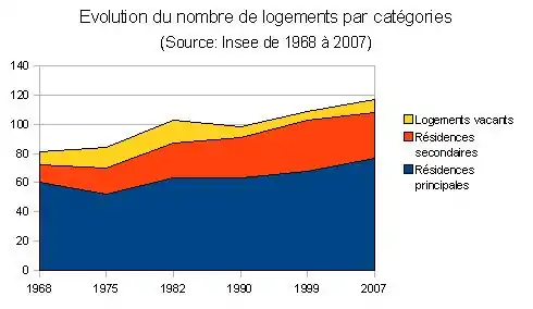 Sur les 40 dernières années, la commune a gagné environ un nouveau logement par an en moyenne. Le nombre de résidences secondaires a constamment augmenté jusqu'en 1999, aux dépens des résidences principales. Cependant, ces dernières progressent à nouveau depuis dix ans alors que les résidences secondaires diminuent légèrement.