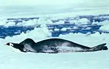 D'autres pinnipèdes, comme le morse et la plupart des phocidés, se reproduisent sur la glace ou dans l'eau[8],[71]. Les femelles de ces espèces ont moins tendance à former de grands groupes. En outre, comme la glace est moins stable dans le temps que la terre ferme, les sites de reproduction peuvent se déplacer chaque année, et les mâles sont incapables d'anticiper le lieu où les femelles viendront s'installer pendant la saison de reproduction. Tout cela fait que la polygynie est nettement moins marquée chez les espèces dont la reproduction a lieu sur la glace. Une exception à cette règle est le morse, où les femelles se regroupent en nombre, peut-être en raison de leurs sources de nourriture qui n'est pas partout suffisante. Les pinnipèdes tendent plus à se regrouper si la banquise est épaisse[71]. Certaines espèces sont monogames, comme le Phoque du Groenland, le Phoque crabier et le Phoque à capuchon[72]. Les phoques qui se reproduisent sur la glace ou dans l'eau n'ont pas ou peu de dimorphisme sexuel. Chez certains phoques, les femelles sont légèrement plus grandes que les mâles. Les morses et les Phoques à capuchon se démarquent en ce sens par leur dimorphisme sexuel prononcé[8],[71].