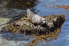 Les phocidés comprennent les animaux connus comme les phoques. Ces animaux n'ont pas d'oreille externe et sont incapables d'utiliser leurs nageoires postérieures pour se déplacer sur terre, ce qui rend leur démarche au sol plus lourde. Dans l'eau, les phoques nagent en se propulsant via leurs nageoires postérieures, qu'ils agitent d'un côté à l'autre, ainsi que le bas du corps[117]. Les phocidés ont de larges mastoïdes, des os temporaux agrandis, des os pelviens éversés et des os massifs au niveau de la cheville. Ils sont dépourvus de processus sourcilier au niveau de l'os frontal et ont des tubercules calcanéum peu développés. Une étude moléculaire de 2006 a conduit à diviser les phocidés en deux sous-familles monophylétiques : celle des Monachinae, qui se compose des genres Mirounga, Monachus et la tribu des Lobodontini (genres Ommatophoca, Lobodon; Hydrurga et Leptonychotes) ; et celle des Phocinae, qui inclut les genres Pusa, Phoca, Halichoerus, Histriophoca, Pagophilus, Erignathus et Cystophora[115].