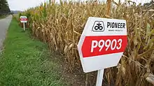 Présentation de semences de maïs Pioneer près de Lahr/Schwarzwald en Allemagne.
