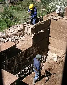 Il existe bien sûr une multitude de mises en œuvre pour le matériau qu'est le pisé. Selon l'endroit où on se trouve, on ne construit pas de la même façon. Ce qui suit n'est donc pas propre à toutes les constructions.