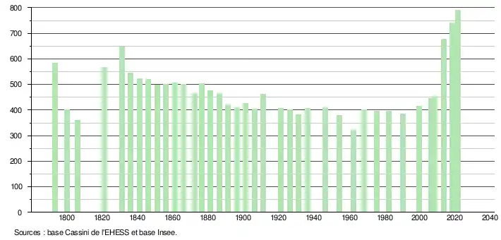 - Fiches Insee - Populations légales de la commune pour les années 2006, 2007, 2008, 2009, 2010, 2011, 2012, 2013, 2014, 2015, 2016, 2017, 2018, 2019, 2020 et 2021.