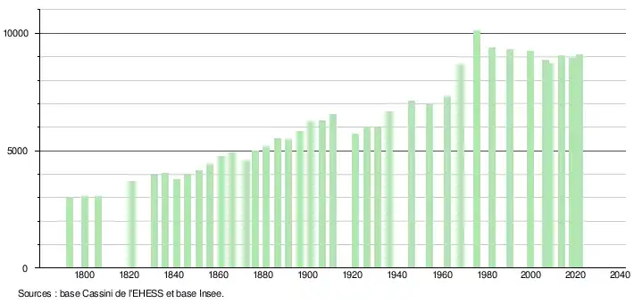 Après la guerre, en 21 ans, la ville gagna rapidement 3 000 habitants en passant de près de 7 000 habitants en 1954 à plus de 10 000 en 1975. Mais la population baisse depuis.